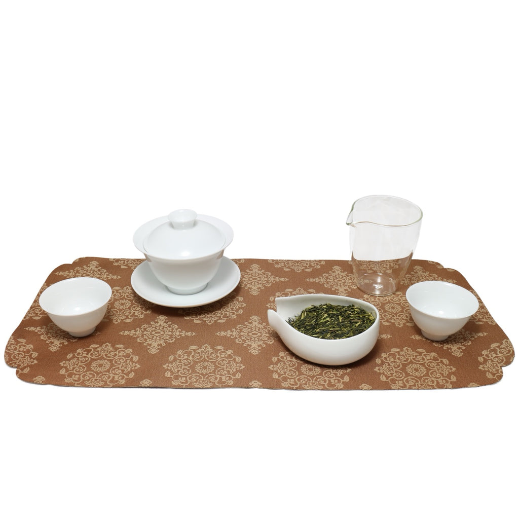 Eine Gongfu-Session gewinnt an Klarheit, wenn alles auf einer zuverlässigen Unterlage ruht. Diese Brokatmatte bietet genau das: eine stabile Basis mit einem eleganten Webmuster, das jedes Teeset aufwertet. Ihre weiche Struktur dämpft das Teegeschirr, reduziert Geräusche und nimmt gelegentliche Tropfen auf, sodass der Tisch sauber bleibt und die Konzentration beim Aufguss.