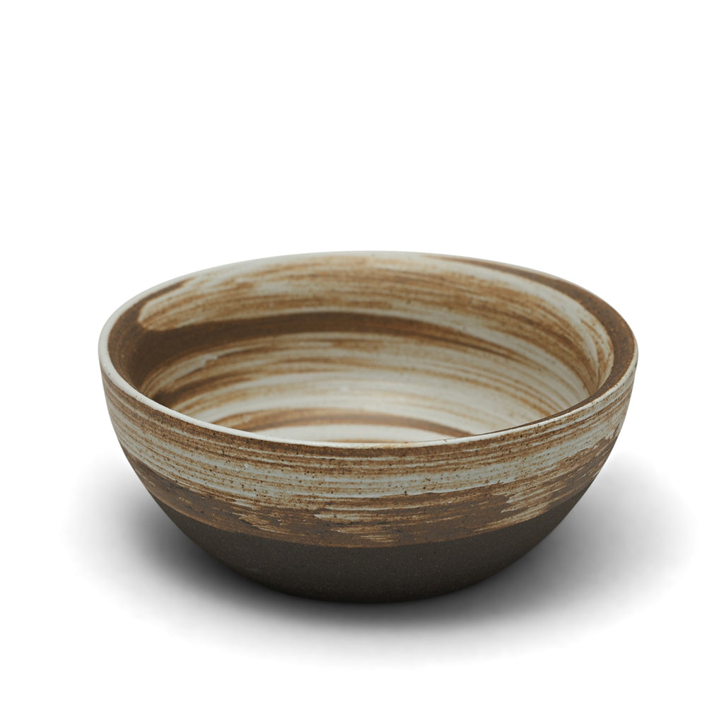 Diese robuste Steinguttasse überzeugt mit ihrer flachen Form, die jedem Teegenuss eine besondere Erdung verleiht. Ob leer oder gefüllt – sie bleibt stets genau dort stehen, wo man sie absetzt, und erwartet geduldig ihren nächsten Einsatz. Ihr dunkles Fundament wird von einer Glasur in fließenden Übergängen von Creme bis Braun geziert, die sich frei um die Tasse schlingt und auf jedem Stück einzigartige Muster hinterlässt. Inspiriert von der Philosophie des Wabi-Sabi – der Schönheit im Unvollkommenen – setzt sie sich bewusst von kunstvoll bemusterten Porzellantassen ab, die makellos uniform wirken sollen. Diese Tasse trotzt jeder Strömung und bringt den Tee zuverlässig zu Ihnen – ganz gleich, was passiert. Wer stattdessen gerne Höhenflüge wagt, sollte ihr schlankeres Gegenstück entdecken: die Kegeltasse Erdwelle.