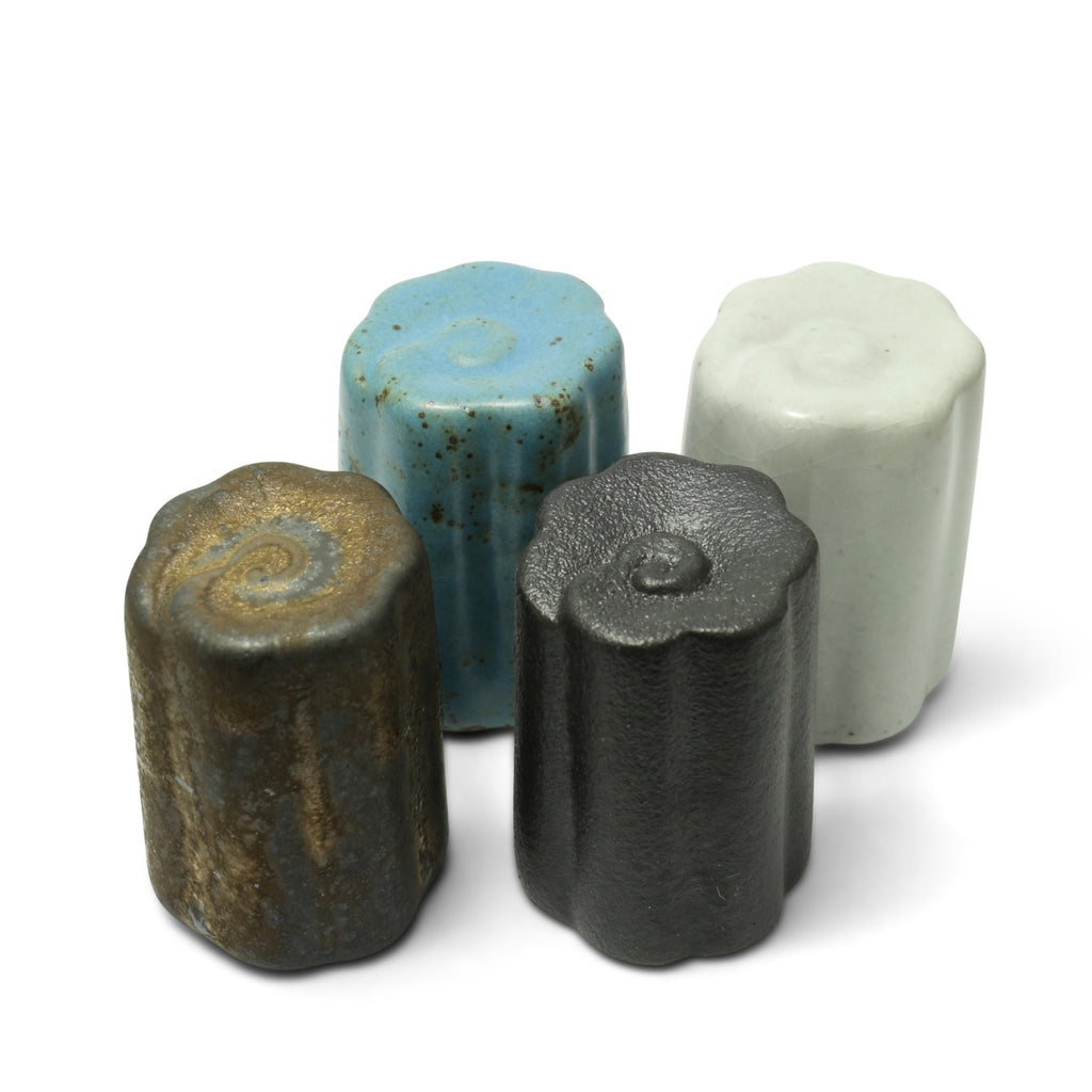 Diese hübschen Deckelhalter werden aus dunklem, grobem Ton mit verschiedenen Glasuren hergestellt. Der kleine Sockel in Form einer siebenblättrigen Blume hat eine ausreichend flache Oberfläche, um den Deckel eines Gaiwan, einer Teekanne oder eines Aufgussbechers zu balancieren. Wenn man frisches, heißes Wasser in das Aufgussgefäß gießt oder den Duft der feuchten Blätter darin tief einatmet, kann der Deckel auf diese Weise königlich (und hygienisch) über dem Teetisch schweben, während er die Ästhetik des Cha Xi aufwertet, wenn er nicht benutzt wird. Es ist eines jener Accessoires, die für den strengen Minimalisten zwar nicht notwendig sind, aber den Spaß an der Teezubereitung fördern.