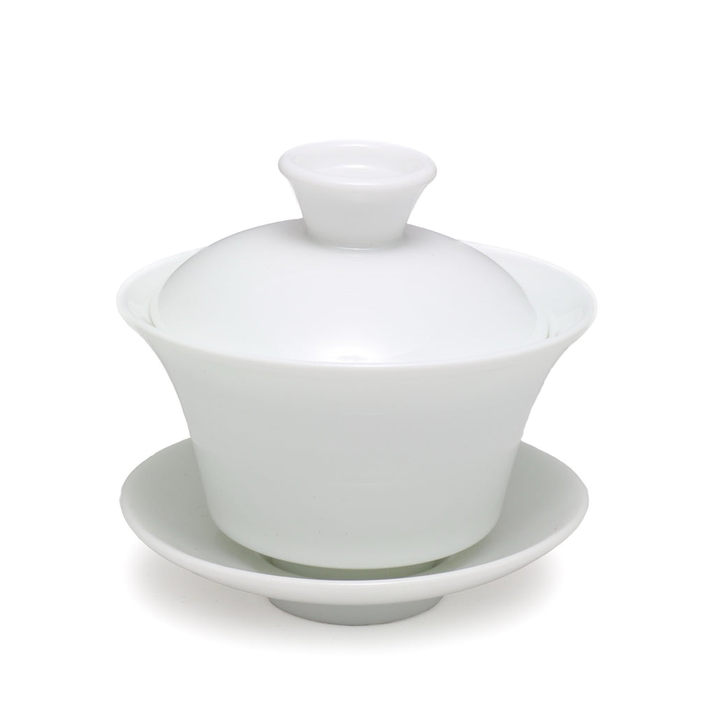 Dieser Gaiwan aus weißem Porzellan ist klein, aber kein Anfänger in Sachen Tee und spiegelt die Launenhaftigkeit des Teeliebhabers wider: Je mehr man Tee genießt, desto kleiner wird das Teegeschirr. Seine Größe eignet sich für das Aufbrühen von Tee im Alleingang und für Gongfu Cha im Chaozhou-Stil, und er ist besonders nützlich für Nebeneinander- oder Blindverkostungen, da er ein großes Blatt-Wasser-Verhältnis unterstützt, während er eine beachtliche Menge Tee ziehen lässt. Die Untertasse und der Deckel lassen sich gut aufeinander stapeln: Die leichte und robuste Konstruktion ermöglicht eine einfache Handhabung, ohne dass man Angst haben muss, dass das Gefäß bricht. Dieser klassische Gaiwan ist sicherlich ein hervorragender Standard und ein erschwinglicher Einstieg in vergleichende Verkostungen für den anspruchslosen Genießer.