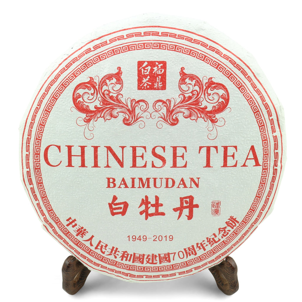 Mit dieser Sonderpressung des Bai Mudan soll der 70. Jahrestag der Volksrepublik China gefeiert werden. Zu diesem Anlass haben die Produzenten den aromatischeren Fuding Da Bai mit dem ruhigeren Körper des Qun Ti Zhong gemischt. Nach einigen Jahren der Reifung ist der Tee warm und leicht süßlich mit einem sauberen Abgang auf der Zunge, der an Staudensellerie erinnert, während sich die Aromen in der Nase fortsetzen: ein Hauch von Gewürzen, frischem Zuckerrohr und duftendem Holz, ja sogar ein Hauch von Zedernholz. Der Kenner von weißem Tee kann sich wirklich Zeit nehmen und ihn genießen, aber der komprimierte Tee wird in den nächsten Jahren langsam weiter reifen.
