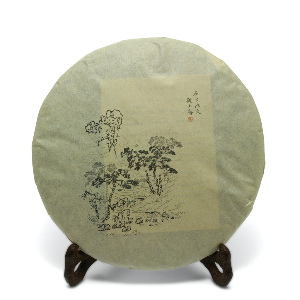 Das Gefühl, das man beim Trinken dieses Tees empfindet, lässt sich wohl am besten mit "geerdet" beschreiben: Seine dunklen Aromen und der tintige Aufguss ziehen die Füße in die Erde und richten den Körper auf. Geerntet im Kreis Menghai, direkt an der burmesischen Grenze, konzentriert sich sein Erzeuger auf die Beschaffung von Blättern alter Teebäume, und der Aufguss wirkt, als sei ihm etwas von ehrwürdiger Erfahrung mitgegeben worden: Kräftig, ohne aufdringlich zu sein, strömt ein warmer Hauch von Backmehl in die Nase, während die Zunge allmählich eine intensivere Dosis von würzigem Shiitake-Pilz und bitterem Kakao erhält. Sein voller Name, "Der Quellbach fließt über einen Felsen", spiegelt sich nicht nur in der charmanten Verpackung des Bing wider, sondern ist auch eine Art Kennzeichnung für "Schönheit" - vielleicht das, was ein solcher Tee wahrzunehmen anregt.