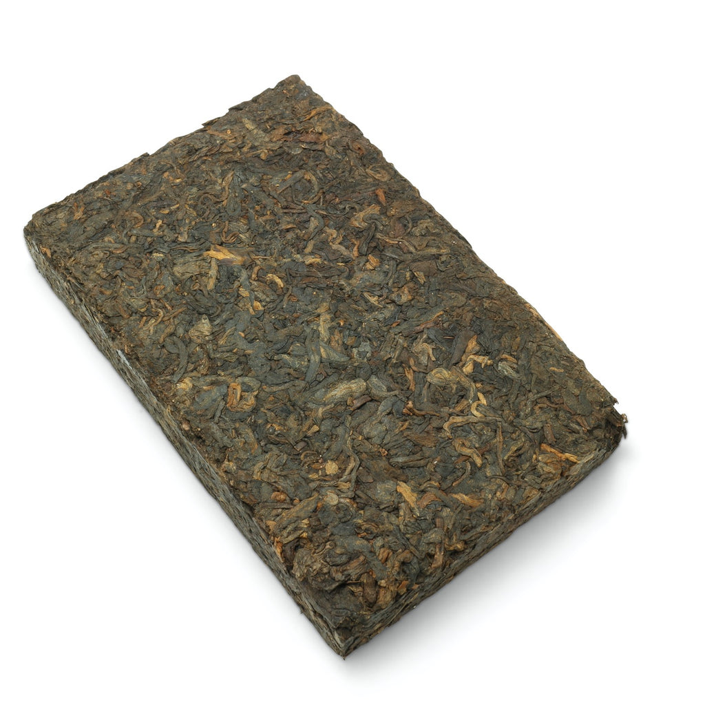 Obwohl sich der Begriff "Pu'er" in erster Linie auf Tee aus der gleichnamigen chinesischen Region bezieht, hat die Pflanze im benachbarten Myanmar eine ebenso lange Geschichte - und eine eigene Unterart - und wir freuen uns, einen Ziegeltee im Shu-Pu'er-Stil aus diesem Land anbieten zu können. Nach der Ernte von Gushu-Bäumen wurde das große Gewirr von Blättern und Stängeln zur Verarbeitung und zum Pressen ins nahe gelegene Menghai transportiert, wo es seitdem gelagert wird. Frisch aus der langen Fermentation beginnt der Geschmack hell und spritzig, wobei der erste Geschmack nach nassem Holz der warmen Nussigkeit von Pignoli weicht, bevor er im Nachgeschmack trocken und würzig als Sandelholz-Weihrauch wieder auftaucht. Die anfängliche Säure geht ebenfalls in eine fast blumige Fruchtigkeit über, die an Nektarine oder Himbeere erinnert, und sorgt so für einen Heicha mit einem überraschenden Maß an Aroma... dieser ungewöhnliche Ziegel ist sicherlich etwas ganz Besonderes.