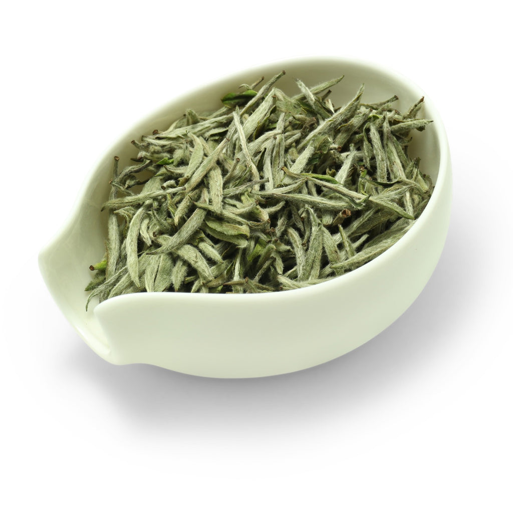 Die samtigen, silbernen Knospen, die von dunklem und hellem Grün gesäumt sind, laden zum Genießen ein, verlangen aber auch nach einer gewissen Ziehzeit. Dieser junge Weiße Tee ist sehr weich, mit einem runden, nektarinenartigen Mundgefühl und gleichzeitig anregend mit einer gleichmäßigen Adstringenz. Ein anhaltender Geschmack von Weizengrün verrät seine Jugend, aber er ist bereits sehr trinkbar, mit einem köstlichen Aroma von Apfelblüten und einem Prickeln von Salz und Gewürzen auf der Zunge. Die Liebhaber der knackigsten Weißweine werden hier einen Verwandten erkennen. Einfach exquisit.