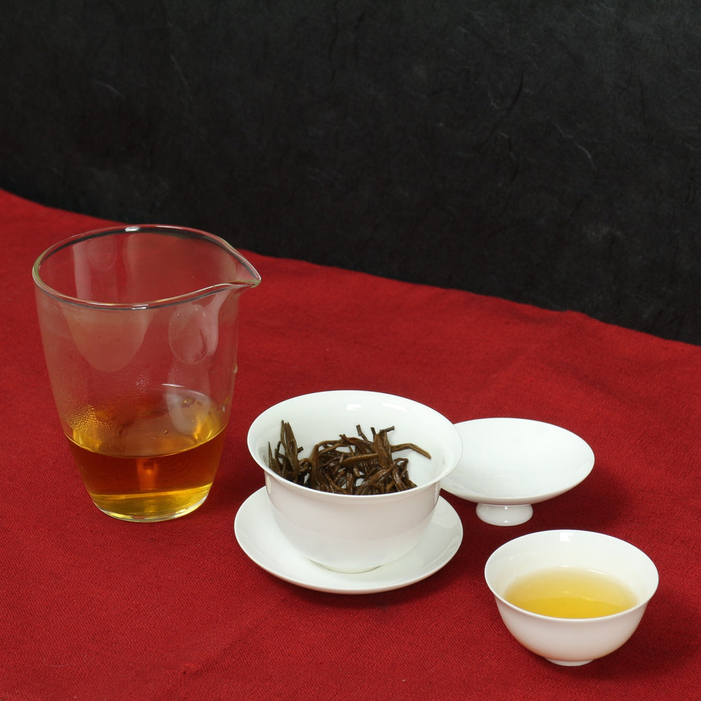 Fein und transparent wie Knochenporzellan bietet dieses praktische Stück aus Chaozhou Platz für drei passende Probierbecher mit jeweils der gleichen Menge Tee. Seine leichte Bauweise trägt sich wie ein Accessoire in der Hand, perfekt angepasst, um in einem geschäftigen Umfeld leicht zu handhaben zu sein. Die dünnen Wände leiten die Wärme schnell ab, so dass die Blätter in fast kochendes Wasser dosiert werden können, ohne dass die Gefahr des Überbrühens besteht. Dies ist eine wesentliche Voraussetzung für den Chaozhou Gong Fu Cha, um ein starkes Gebräu zu erhalten, das ein Gleichgewicht zwischen den flüchtigen Aromen und der reichhaltigen Textur und dem Abgang herstellt.