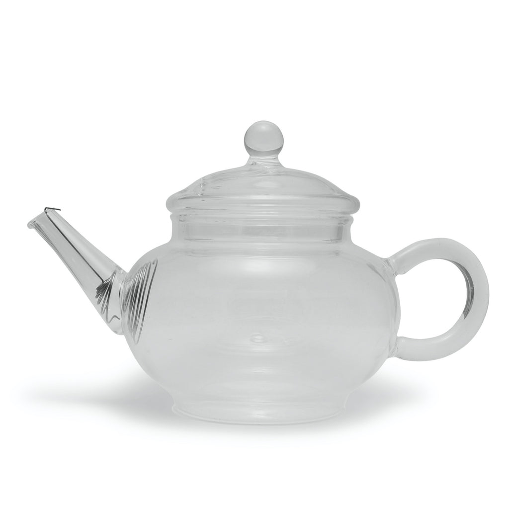 Eine kleine, hochwertige Teekanne aus Glas für eine oder zwei Personen. Teekannen wie diese sind eine Alternative zu einem Gaiwan, wenn es um das Aufbrühen von Tee geht. Die isolierenden und leicht zu reinigenden Eigenschaften von Glas eignen sich für alle Teesorten, besonders aber für grünen Tee, und die Transparenz des Glases ist vorteilhaft für Blumen- oder Blütentees. Der mitgelieferte Drahtfilter filtert alle Blätter bis auf die kleinsten heraus und lässt sich zur gründlichen Reinigung leicht herausnehmen. Seine schlichte Transparenz und sein klassisches Design bilden einen perfekten Hintergrund für Ihr anderes Teegeschirr, ob aus Keramik, Ton, Metall, Holz oder anderen Materialien, und ermöglichen es, die Farbe des Tees auch wissenschaftlich zu würdigen.