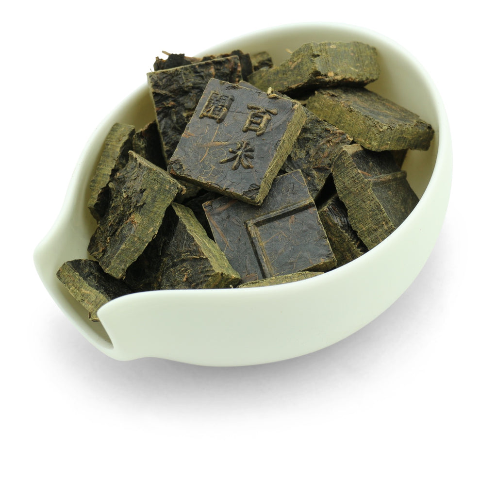 Der komprimierte, nachfermentierte Tee, der einem Block aus Kakao ähnelt, ist eine eigene Kategorie des Zhuan Cha ("Ziegeltee"). Im Gegensatz zu anderen Tees seiner Art ist dieser Hei Cha eine feste Konstruktion und für das Übergießen mit heißem Wasser vorportioniert. Aber der Eindruck entsteht schon viel früher. Schon beim Öffnen des Beutels mit diesen Teehäppchen taucht man in eine Kanne mit Tigerbalsam ein und findet sich in einer öligen Bouillon aus Kampfer, Süßholzwurzel und Rohrzucker wieder; mit dem ersten und den (nicht enden wollenden) folgenden Aufgüssen. Wie diese Aromen hierher gelangt sind, ist vielleicht eine Überlegung wert, wenn man sich im Bad der heilenden Köstlichkeiten befindet.