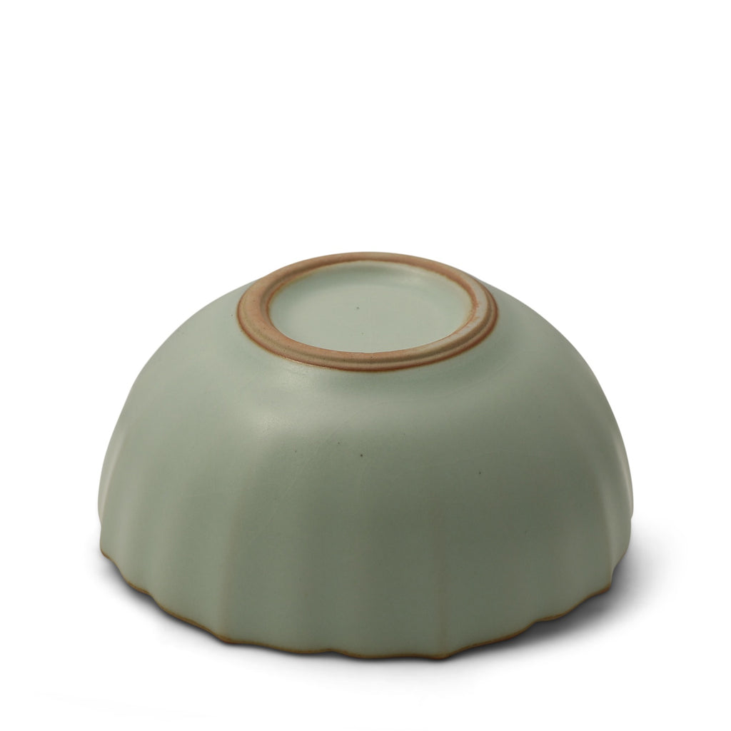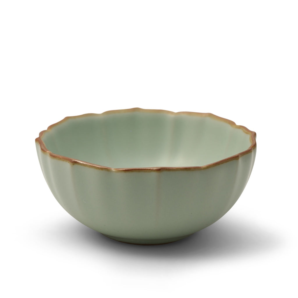 Mit ihrer sanft geschwungenen Silhouette und dem warmen, braunen Rand strahlt diese gerippte Seladon-Tasse stille Selbstsicherheit aus. Die blassgrüne Glasur, glatt und makellos, zollt Jahrhunderten chinesischer Ästhetik Tribut – jener Zeit, als von der Song- bis zur Ming-Dynastie monochrome Keramiken wie diese für kultivierten Geschmack standen. In ihren geschwungenen Wänden liegt ein taktiles Rhythmusgefühl, das an eine voll erblühte Blume erinnert und zugleich in einer Form verankert ist, die zeitlos und elementar wirkt.