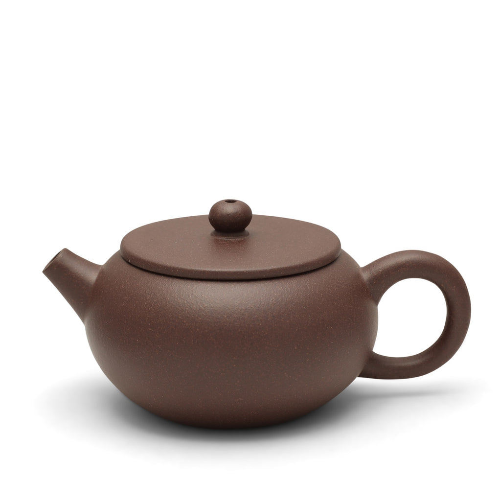 Ein flaches Xishi-Profil wird mit einem noch flacheren Deckel kombiniert; der Griff und der Knauf sind sowohl für zierliche als auch für eher kräftige Finger geeignet - ein untrügliches Zeichen für meisterhafte Handwerkskunst. Das schlichte, aber elegante Design, getreu seiner namensgebenden Konkubine Xishi, zeugt von ewiger Schönheit. Im Gegensatz dazu wirkt die Kanne durch ihr flacheres Design etwas weniger prätentiös als der eher runde, normale Stil. Die Kanne ermöglicht das Einlegen großer Blätter in die weite Öffnung, das schnelle Aufbrühen mit einem hohen Blatt-Wasser-Verhältnis und ein schnelles Ausgießen, das durch einen eingebauten, überdurchschnittlich großen Netzfilter gewährleistet wird.