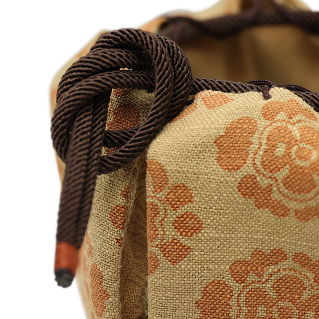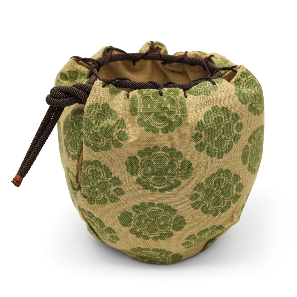 Er ist aus Rohbaumwolle gefertigt und weist eine reiche, organische Textur auf, die die natürliche Schönheit des Materials unterstreicht. Diese Faser verleiht ihm nicht nur ein weiches, aber dennoch robustes Flair, sondern sorgt auch für Atmungsaktivität und schützt Ihr Teegeschirr mit Sorgfalt. Der Kordelzugverschluss aus rustikaler geflochtener Kordel unterstreicht die schlichte, aber fesselnde Ästhetik.