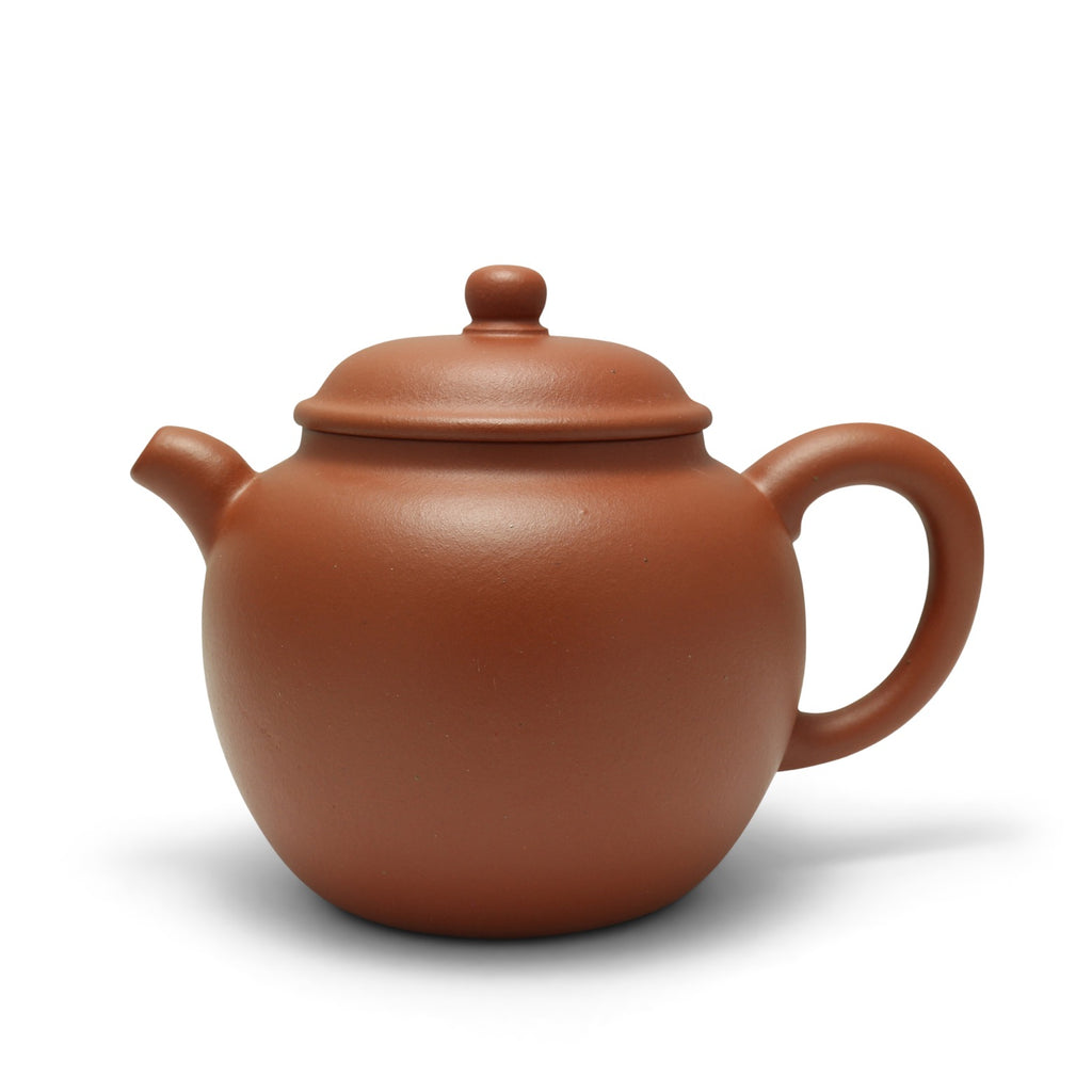Hergestellt aus glänzendem und dichtem Zhuni (朱泥), der im Huanglong-Berg abgebaut und bis zur Verarbeitung durch die Künstlerin Jiangli in ihrer privaten Umgebung gelagert wurde. Da er beim Brennen schrumpft, empfiehlt er sich aufgrund seiner Dichte und seiner hervorragenden Wärmespeicherung für aromatische Tees oder solche, die mit heißem Wasser aufgebrüht werden, wie gerollte Oolongs oder Schwarztees.